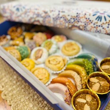 Whether you're looking for a sweet treat to enjoy with your afternoon tea, a thoughtful gift for a loved one, or a unique addition to your next event, Mazagan Sweets has something for everyone. Our homemade Moroccan sweets are perfect for celebrating life's special moments, big or small. With a variety of flavours and customisable options, we bring the essence of Morocco to your celebrations.